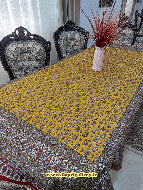 برای کسانی که به رنگ‌ها و طرح‌های سنتی علاقه دارند، این رومیزی پارچه  ای قلمکار با ابعاد240*160 سانتیمتر می‌تواند نهایت جذابیت را داشته باشد.رومیزی های قلم کاری از محبوب ترین، کاربردی ترین و خوش قیمت ترین صنایع دستی اصفهان هستند.